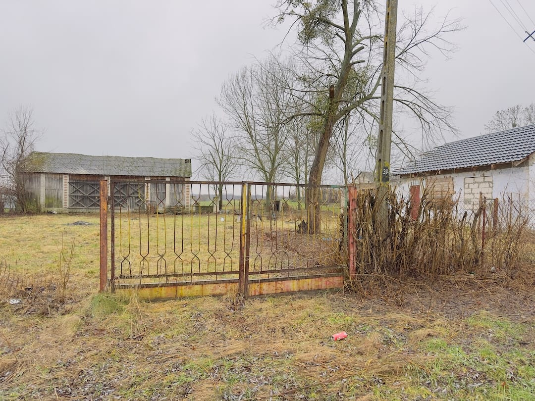 - Front z domem i budynkami gospodarczymi – baza do zamieszkania lub rozwoju gospodarstwa.
