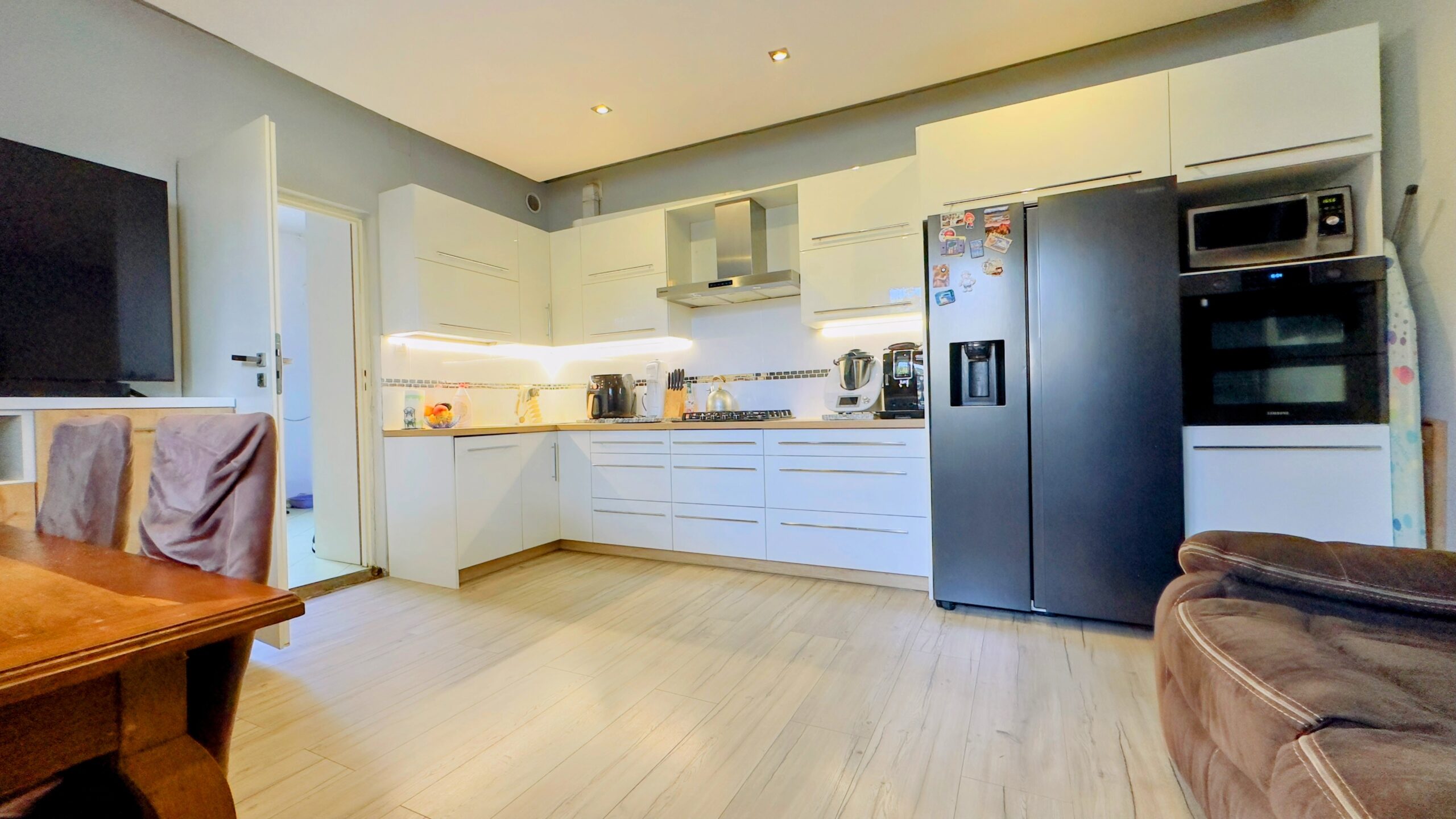 Salon z aneksem kuchennym – 17,42 m² (przestrzeń dzienna z miejscem na wspólne posiłki i wypoczynek)